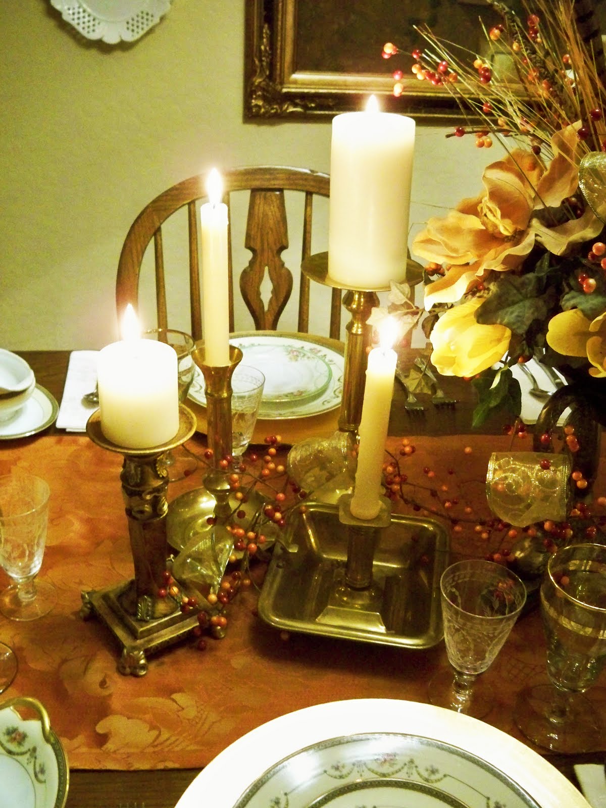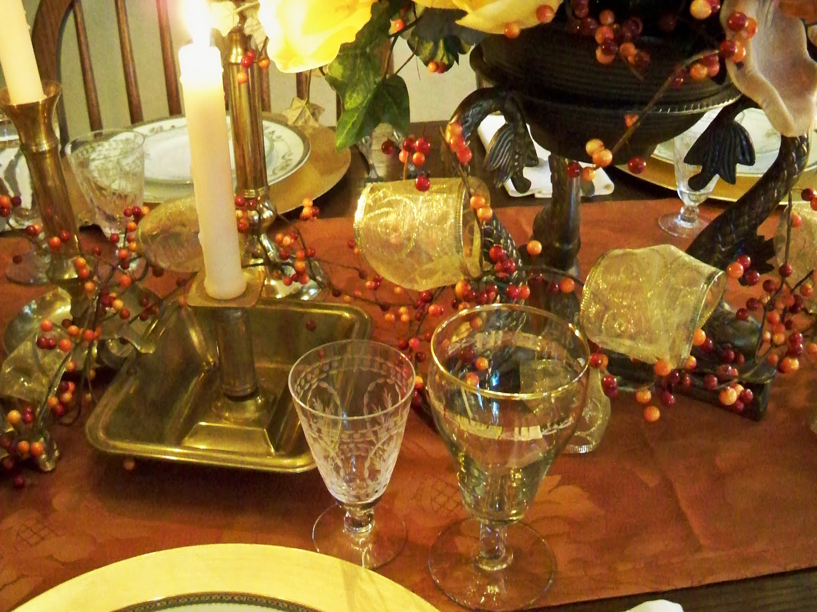 I’ve set the table today for Thanksgiving Dinner. I wanted the table to have a little elegance and I always think gold and candles evoke a sense of elegance.