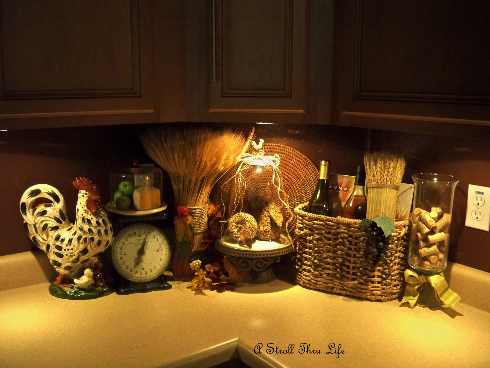 Ok, I am still promoting the “Fall Cloche Party” on this coming Friday the 17th. So remember, dust off those cloches and let’s party. I’ve created a new vignette using some of the same items in the corner of my kitchen.