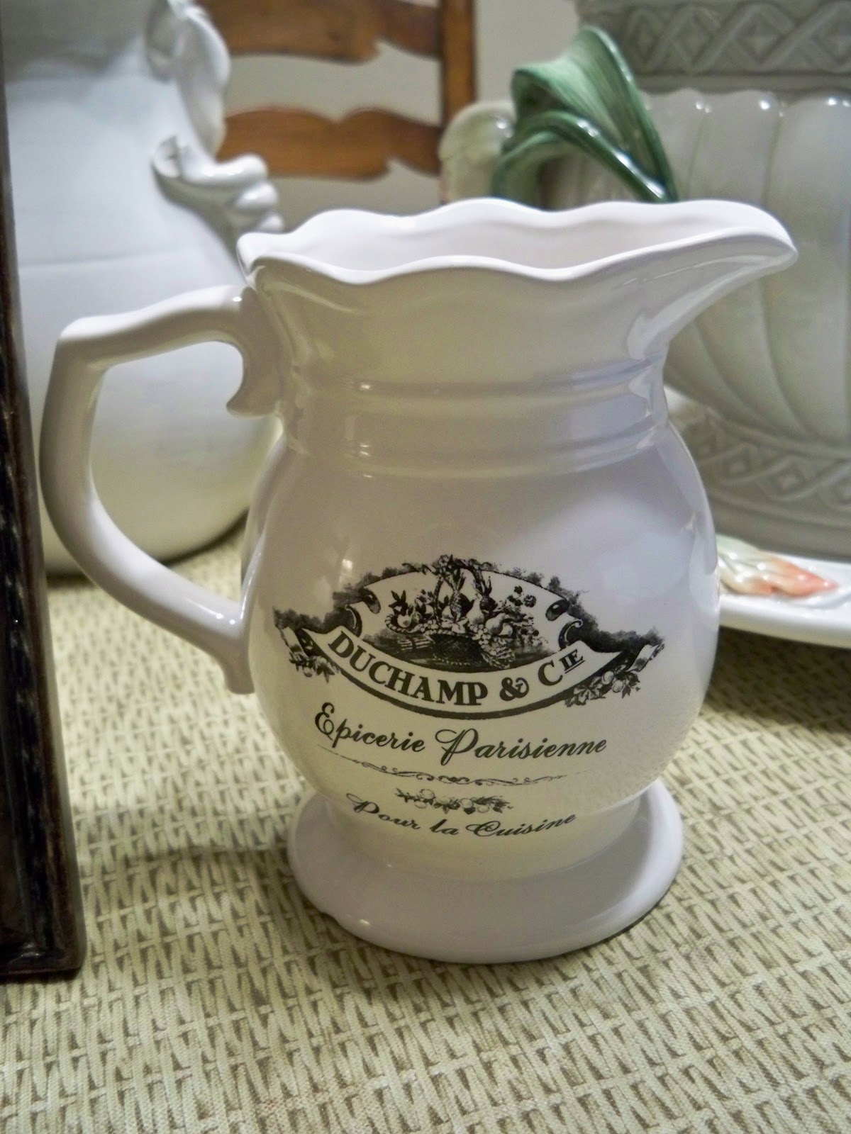 Then yesterday I was trying to do some Christmas shopping, (I really did buy some gifts for family too), I found some treasures that I just had to have. This sweet little frenchy pitcher was in the clearance aisle of HL with a tiny little chip in the base and marked down to $2.50.