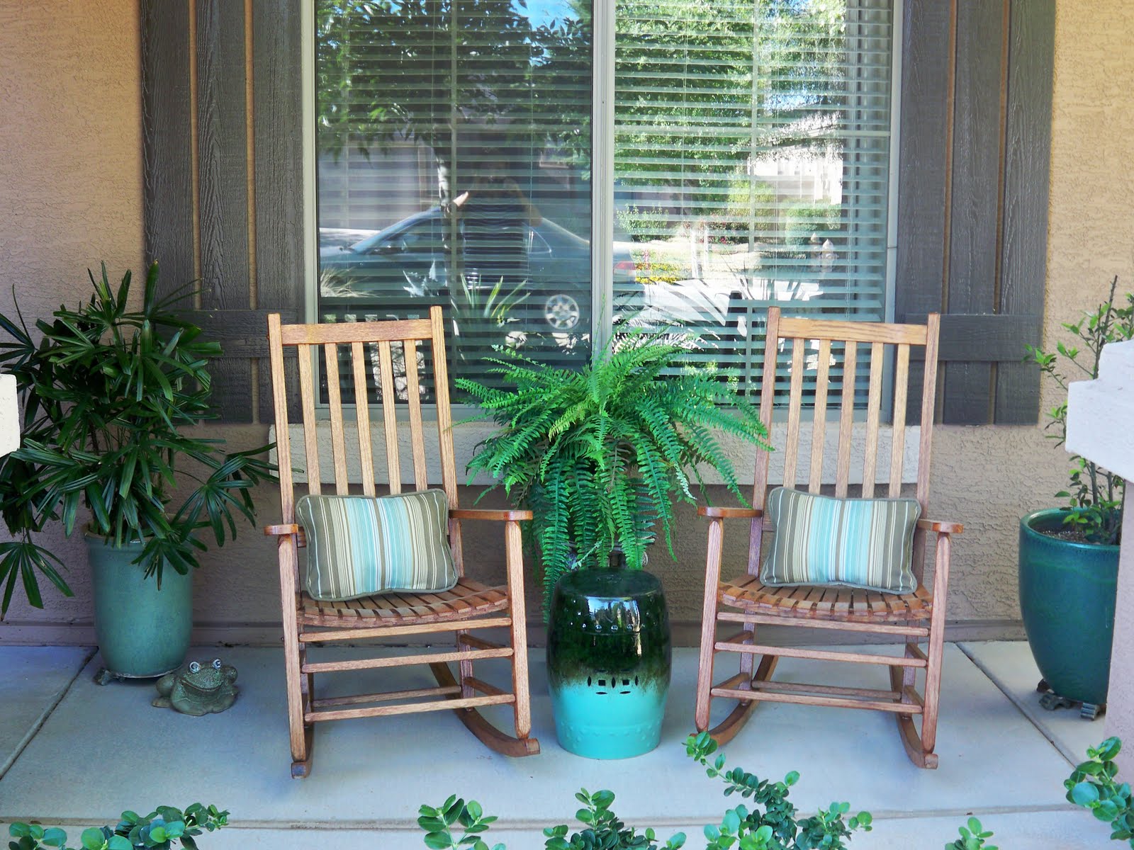 Since we live in Arizona, of course we have desert landscaping, but the porch still looks inviting.