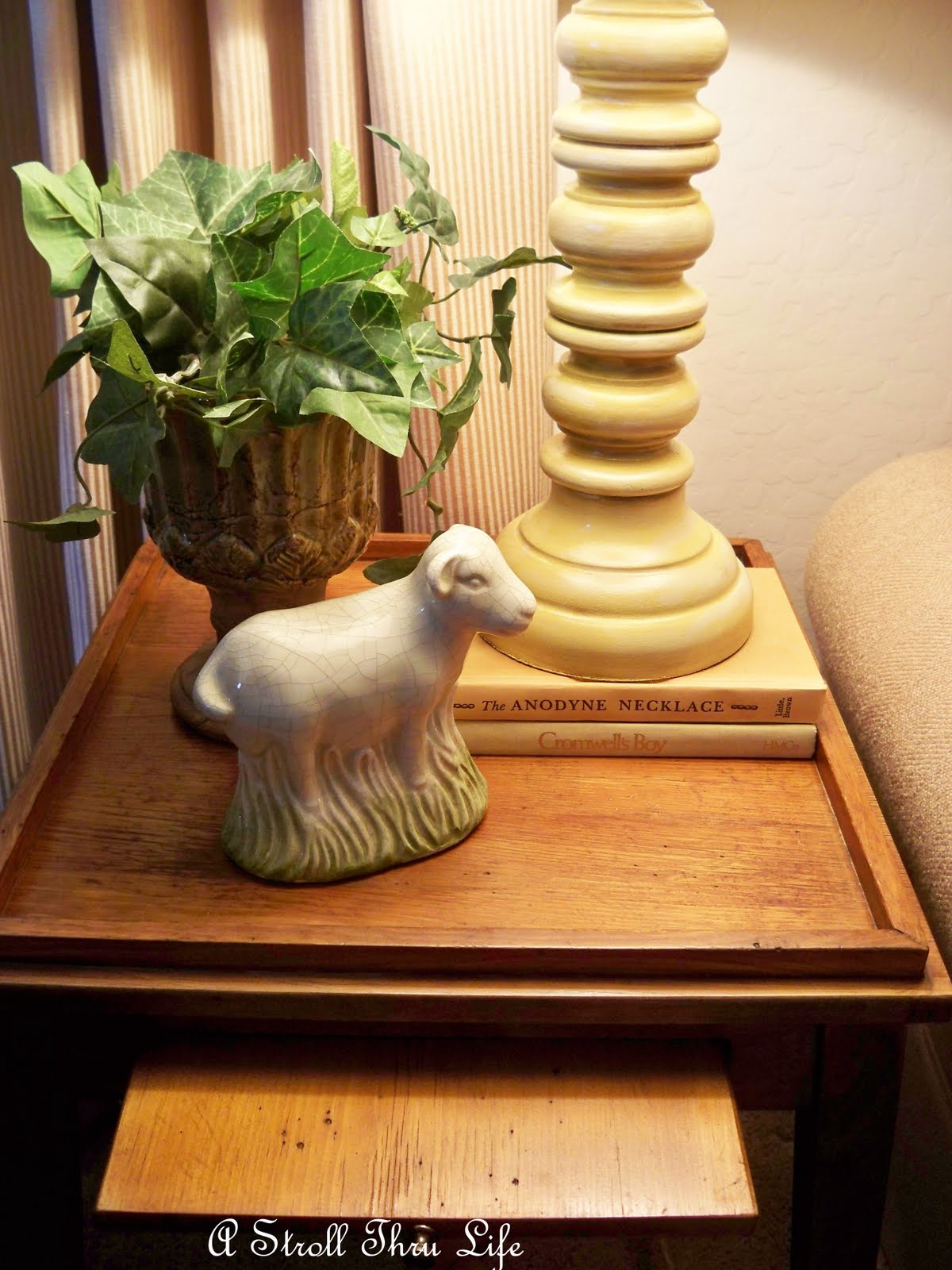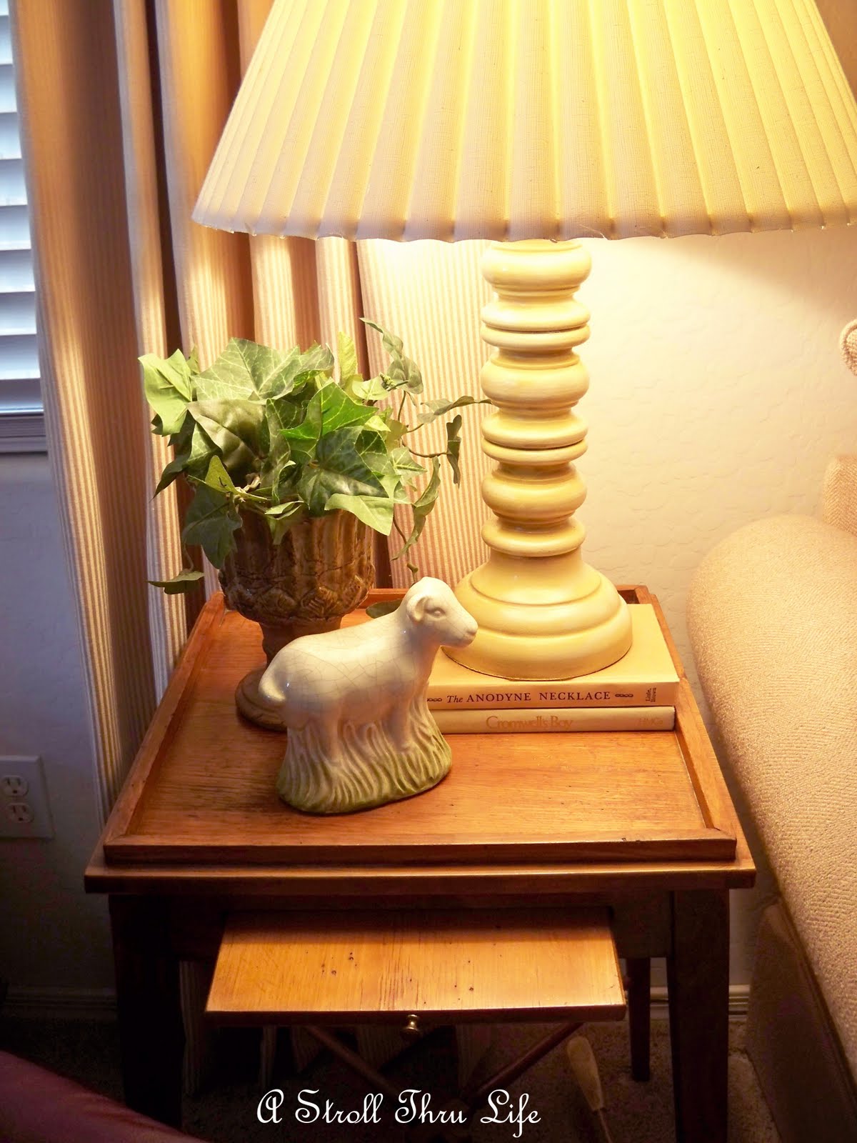 Just the perfect size to go between the hubby’s chair and the sofa.