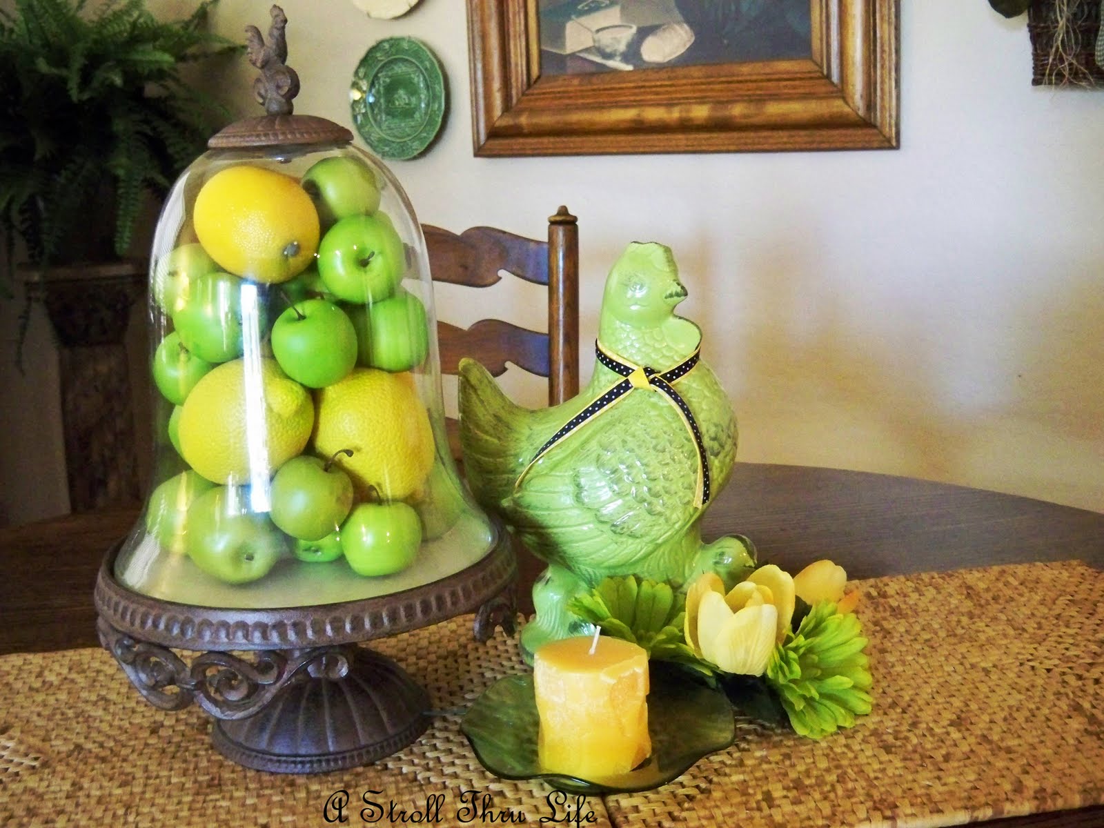 My sassy little lime hen and some apples seemed perfect.