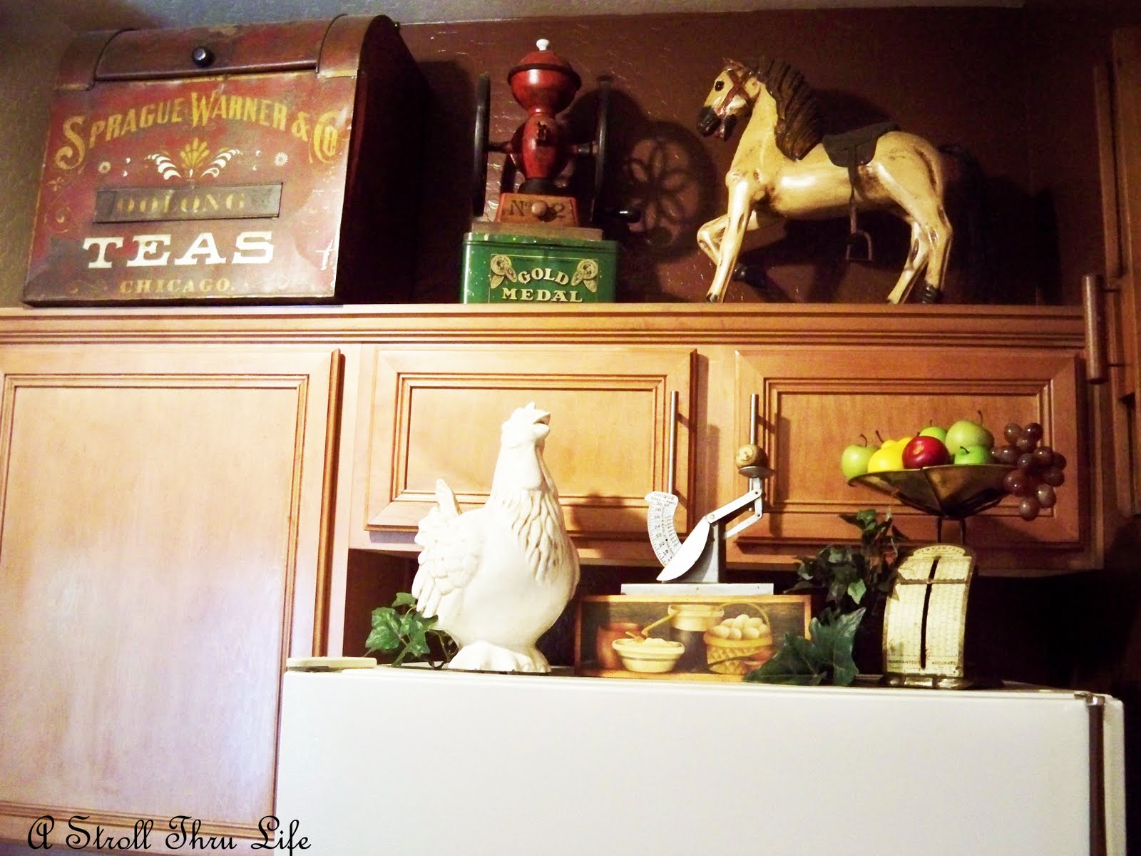 Fun for a change and everything ties in well with the things I have up on top of the cabinets.
