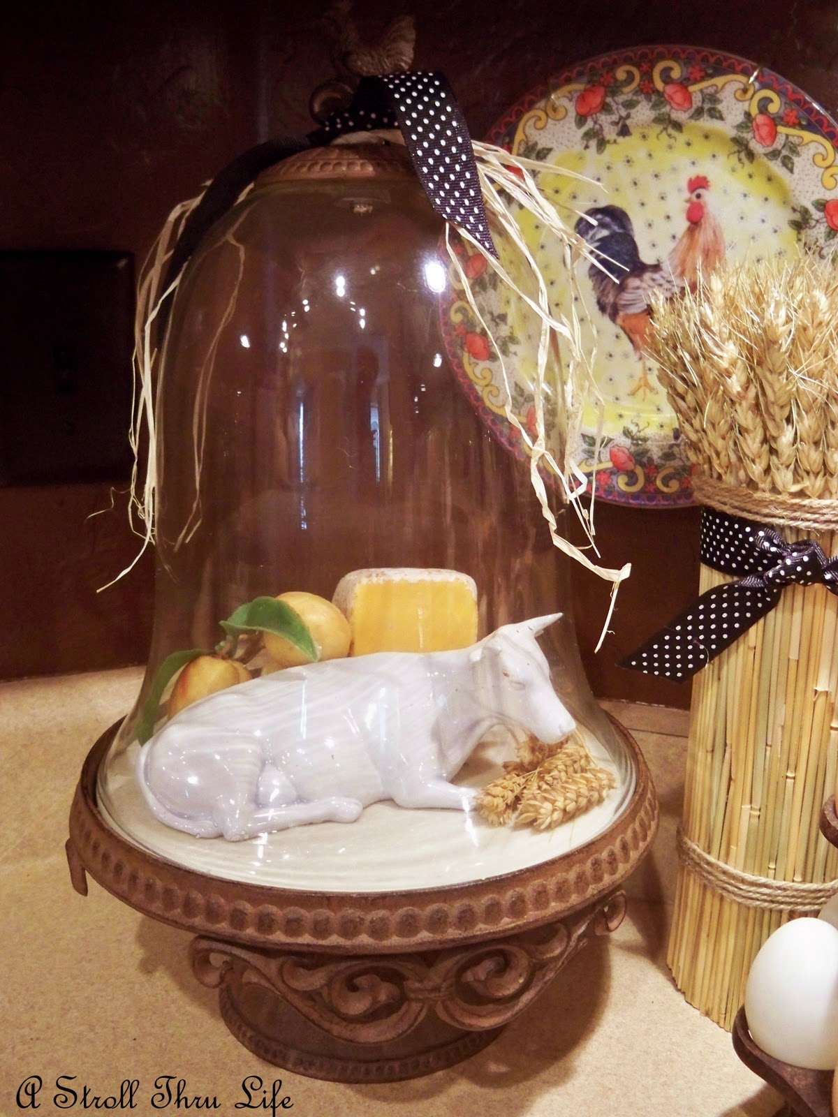 The roo and hen always add color to any vignette. Seems like I have a farm yard collection going on.