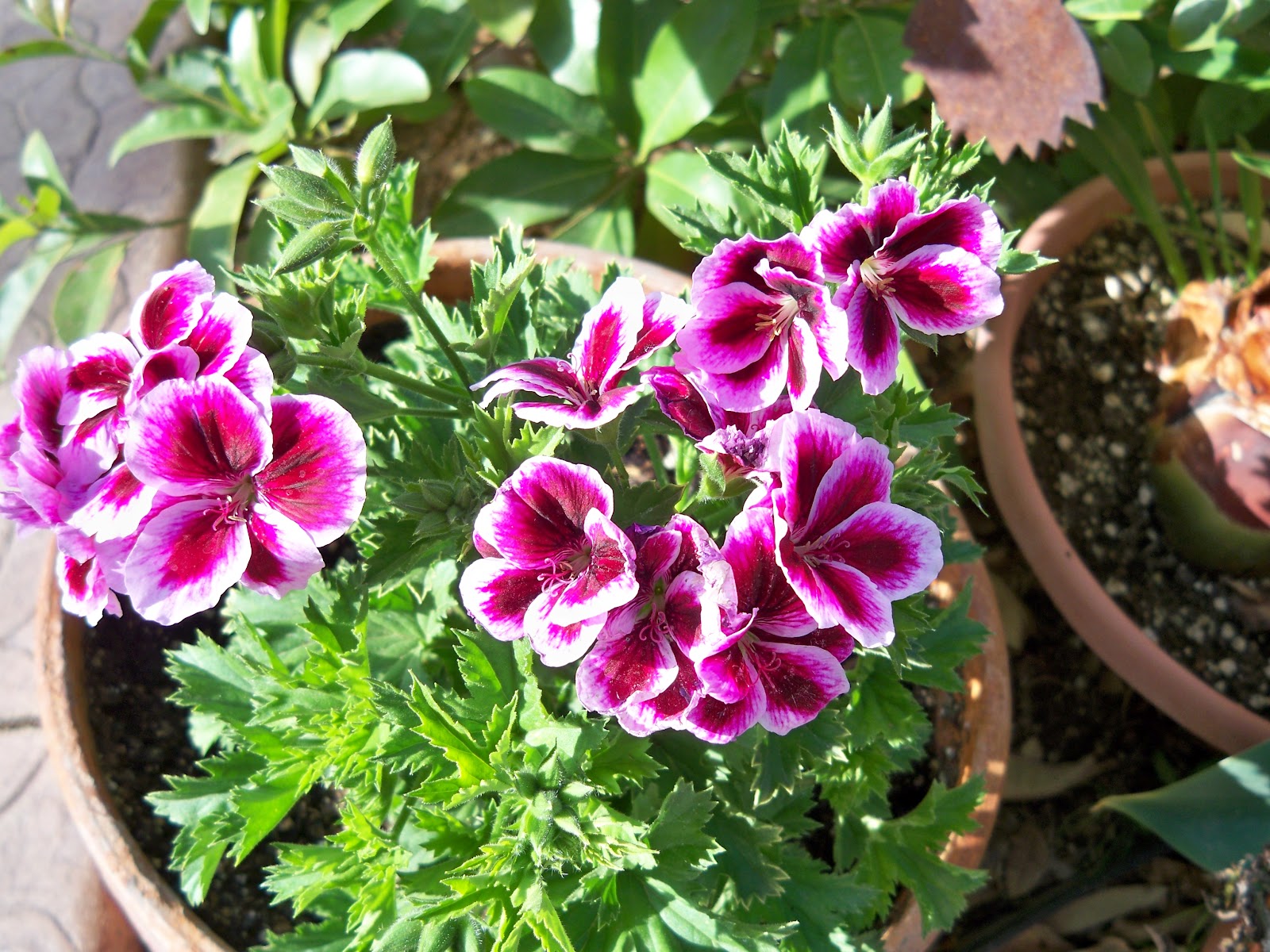 The lawn has been scalped and fertilized and is starting to come back. I love a beautiful green lawn, so this is really not very pretty at all. All those pots in the back need to be organized and rearranged also. Now that I can see the color I can move them around to add color where needed.