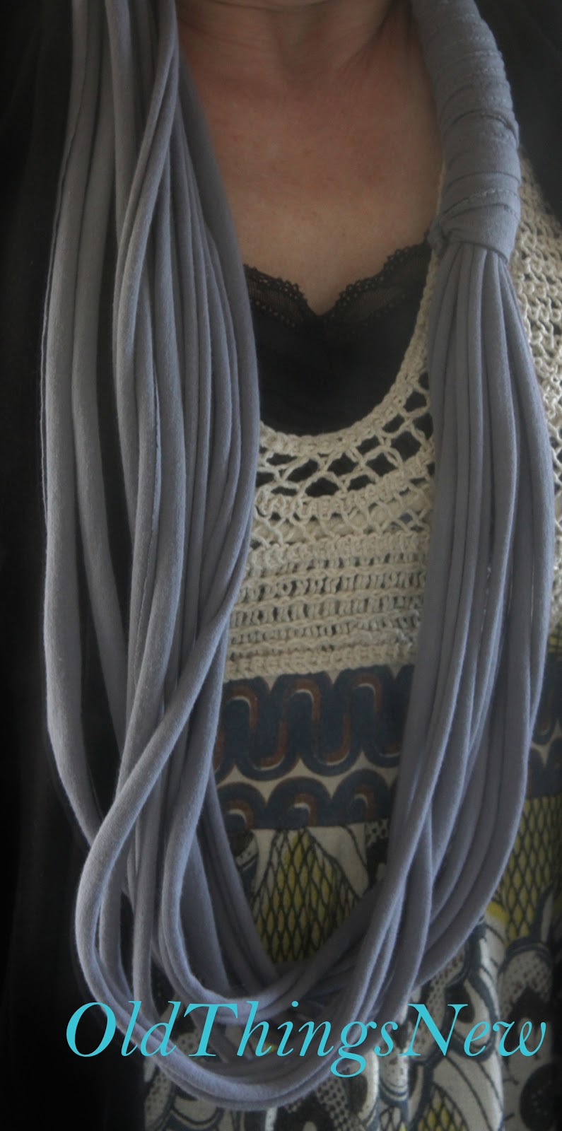 Here is the matching old t-shirt scarf/necklace which you can find here.
