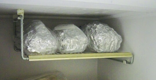 Here they are, tucked away in the freezer in the laundry room. Now when I need something sweet or a hostess gift, I can just wrap one of these in a pretty cloth and basket and I am ready to go.