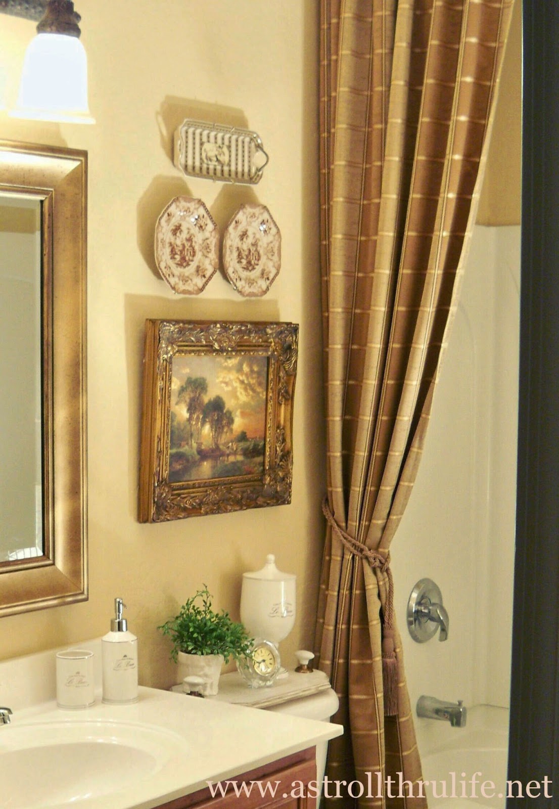 A favorite painting in an onate frame adds some unexpected glam. (It is actually a print and has non-glare glass over it which gives it the look of an oil. The glass will protect it from any moisture.)