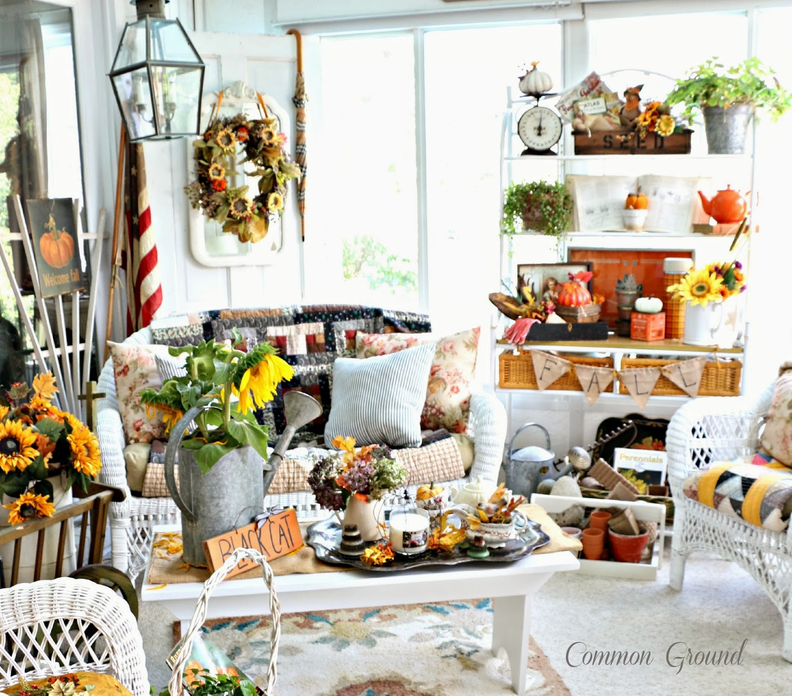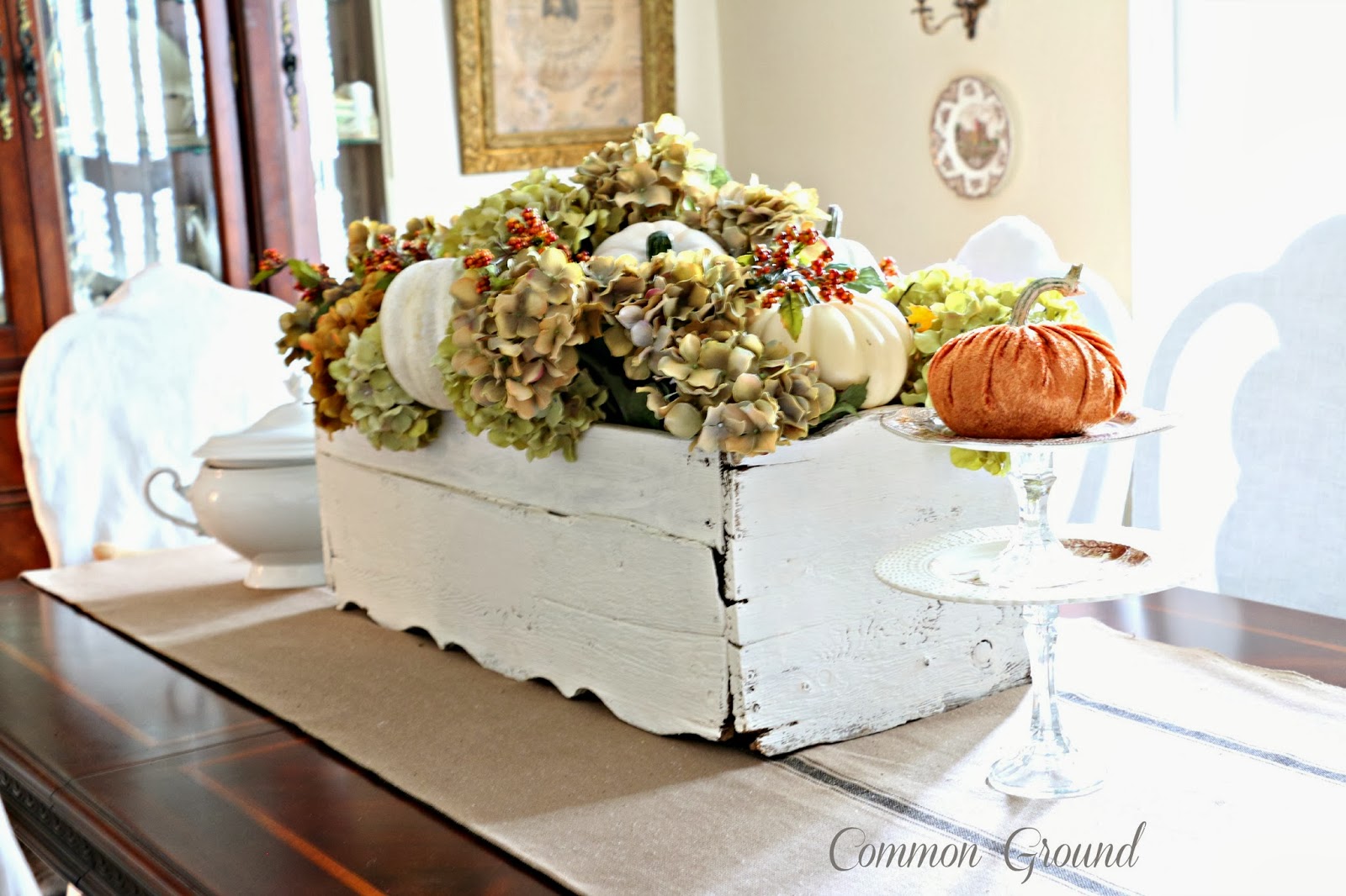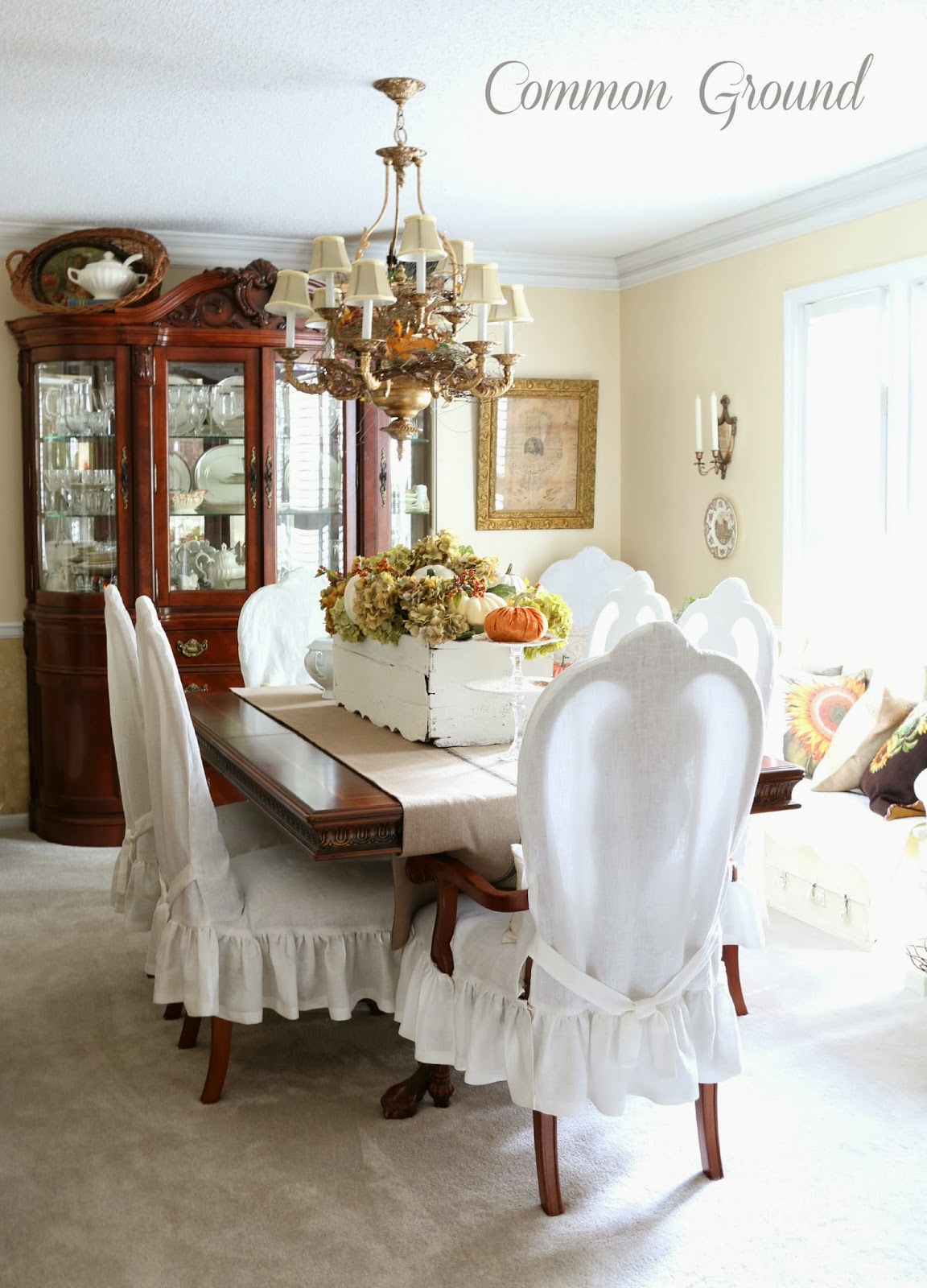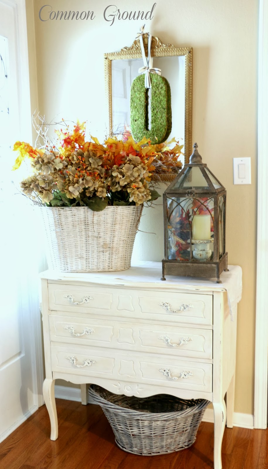Today I am absolutely thrilled to have Debra from Common Ground as my feature. She is such a talented lady and loved by everyone in blogland, so being able to Show Off and Brag about her a little is such a pleasure. Her home has inspired most of us in some way, either by her style or her diy projects. It is such a delight to have her share her Fall decor with us today. So settle in while this gracious and lovely lady takes us on a tour.