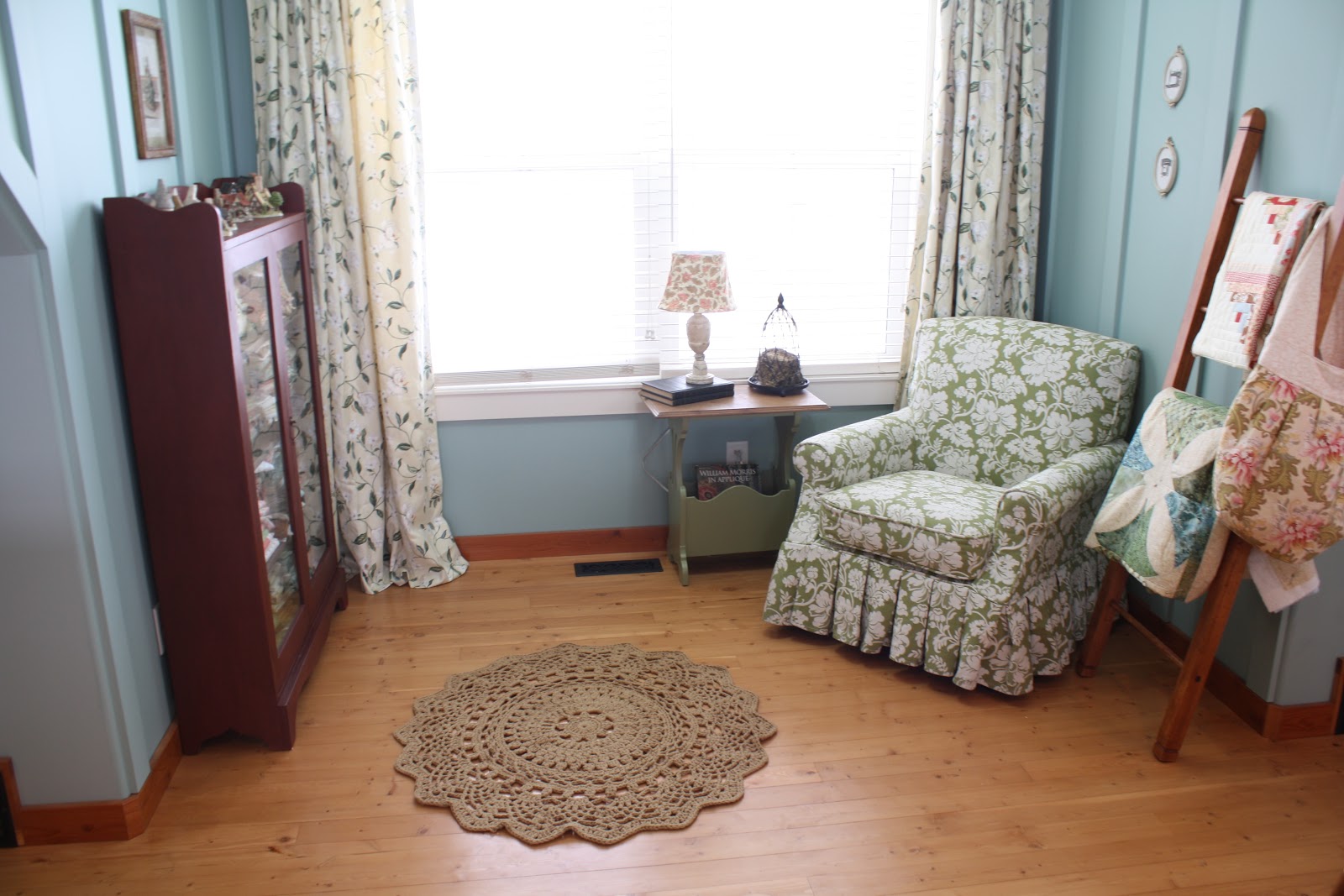 I decorated this room with many inherited pieces from my Grandmother, as well as a few inexpensive purchases (such as the Ikea loveseat).