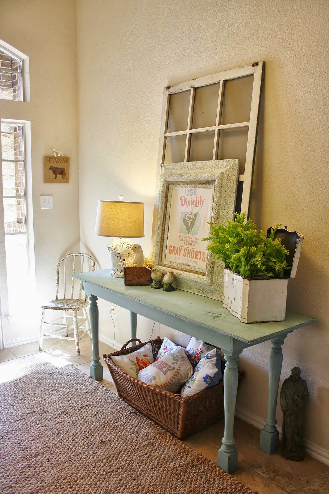 I really like the Spring entry that The Farmhouse Porch shared. Love, love, love the framed flour sack.
