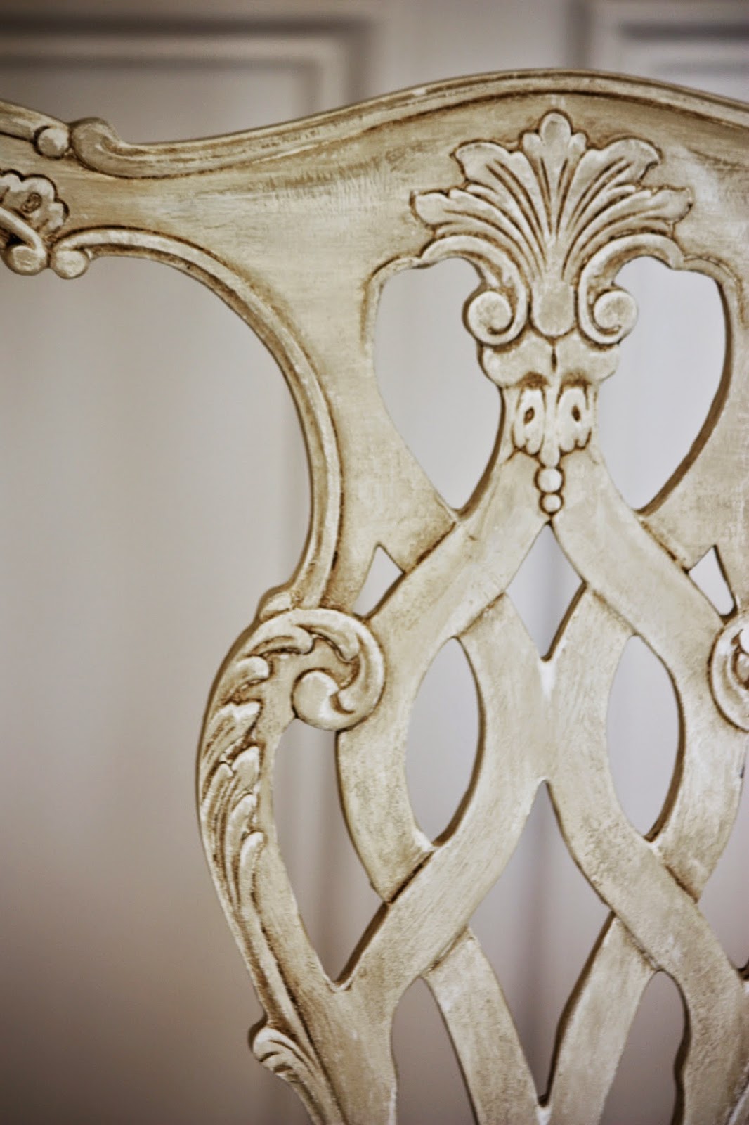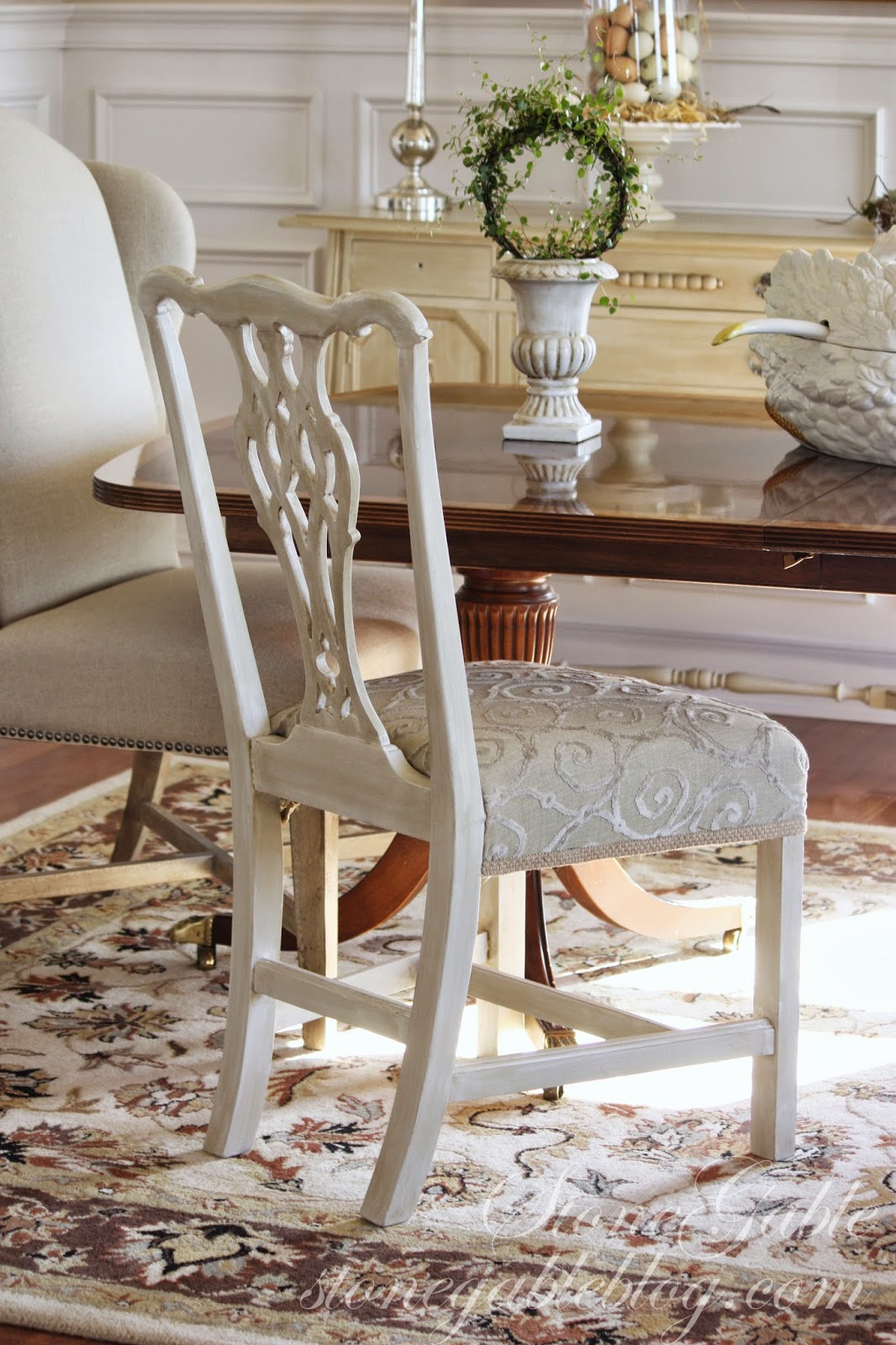 Each chair was painted, color washed, antiqued and dry brushed. To see a tutorial on this technique click HERE