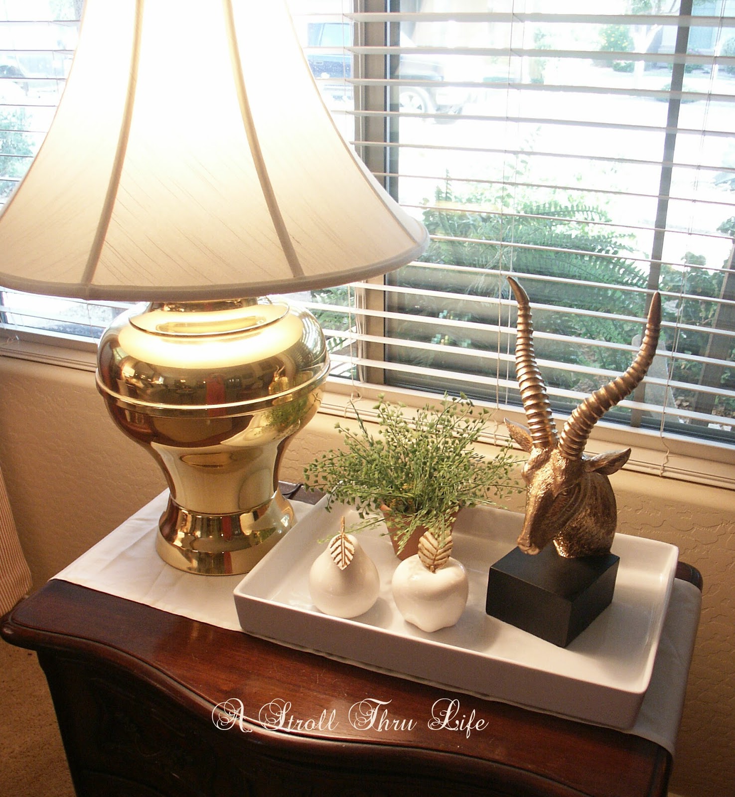 If you are going to test out a trend, be sure to do it with things that don’t bust the budget. All the new contemporary pillows are from Hobby Lobby for around $5 each at 1/2 price and now the gazelle for $5. If I decide this isn’t a look I want to keep, I didn’t break the bank.