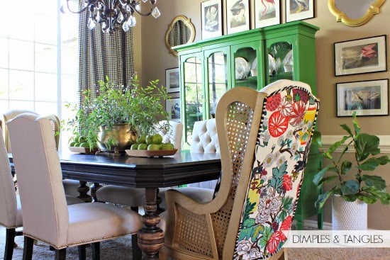 Now isn’t this just the happiest room? Jennifer at Dimples and Tangles is not the least bit afraid of color or pattern and her home is fabulous. How could you not be happy surrounded by these colors and patterns.