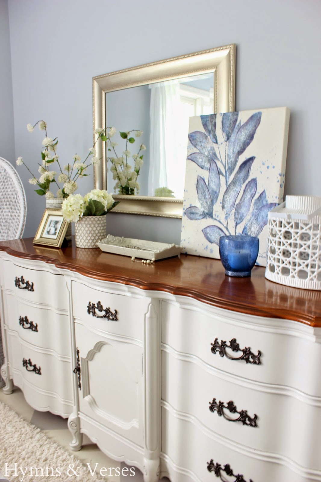 I am so thrilled and honored today to have Doreen from Hymns and Verses as our featured guest. I have followed her blog for quite a while and love her style. She has a special talent for taking cast-offs and recreating them into beautiful and interesting pieces that totally reflect her personality. Her home is so warm, friendly and inviting, just like her. If you don’t know her you have really missed out. As you will see in today’s post, her master bedroom completely reflects her and her style. I love how she pays attention to every single little detail to make a room perfection.