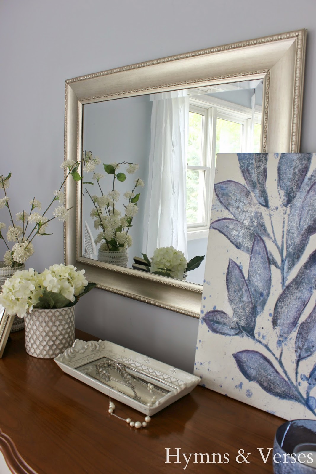My husband made me a floor mirror from old, whitewashed barn siding and it is propped against the wall.