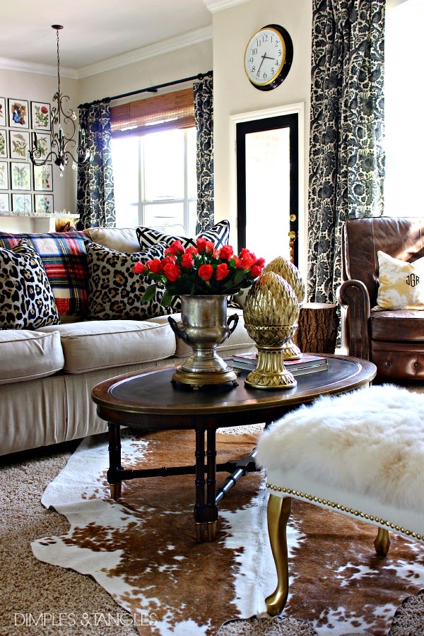 How can you not love a room with all this pattern and texture. Fur, cowhide, leopard, plaid and it all looks amazing mixed together.