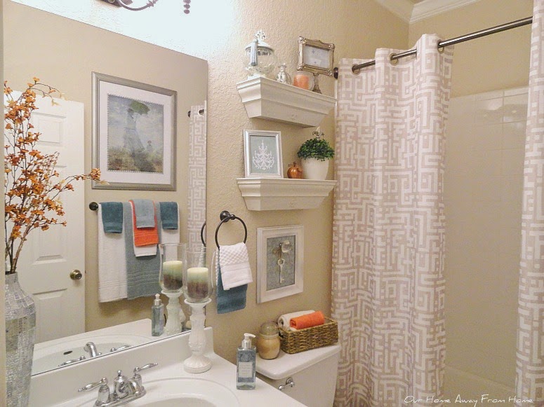 Our Home Away From Home gave herself a budget of $50 to makeover her guest bathroom. I think it looks totally amazing. Now it is light and bright and not all that heavy red and gold she had before and can you believe that she came in under the $50. Find out how she pulled it off shopping the house and repurposeing things she already had.