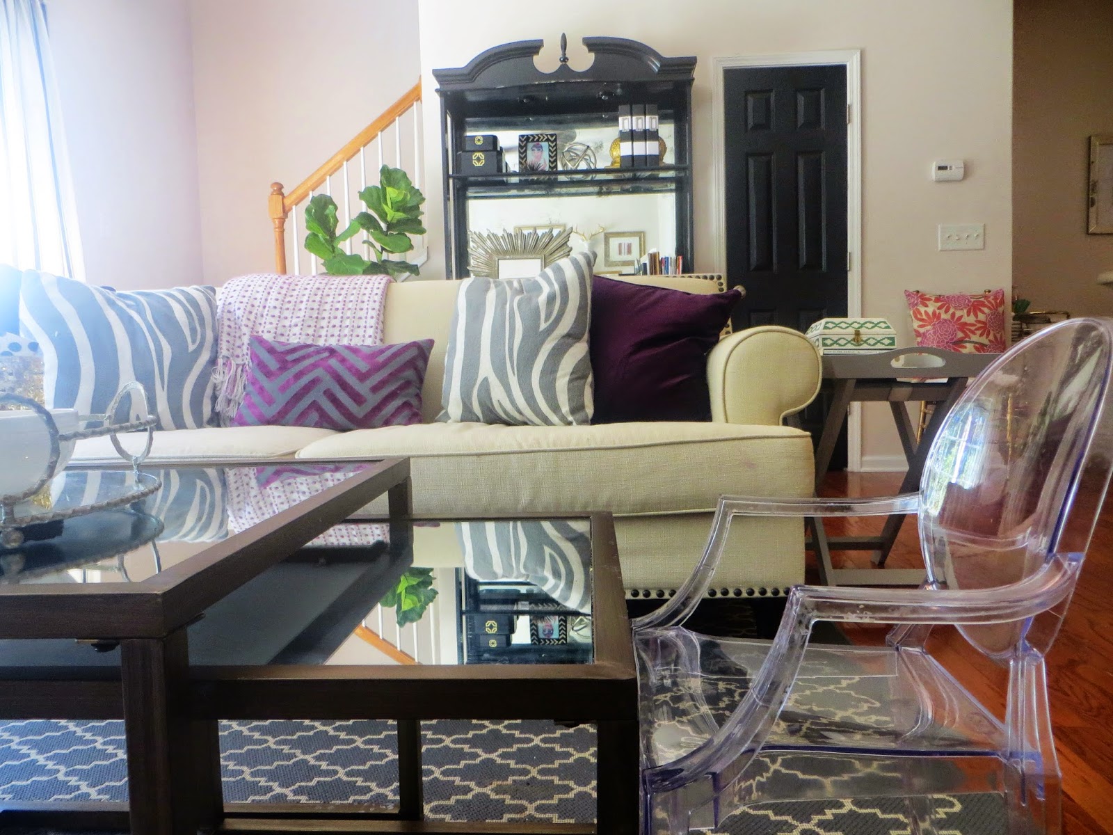 I do have a couple rules for every space I decorate. I like to keep the walls neutral colors which has worked out since we’re not really able to paint them at the moment. I also try to keep my large furniture purchases neutral colors and I allow the accessories and fabrics to do the talking. I have been crushing hard on purple hues this year and I’ve always got to have a little bit of pink ๐ The great thing about this room, is that if I grow tired of the color scheme, it’s a matter of changing out some art and pillows.