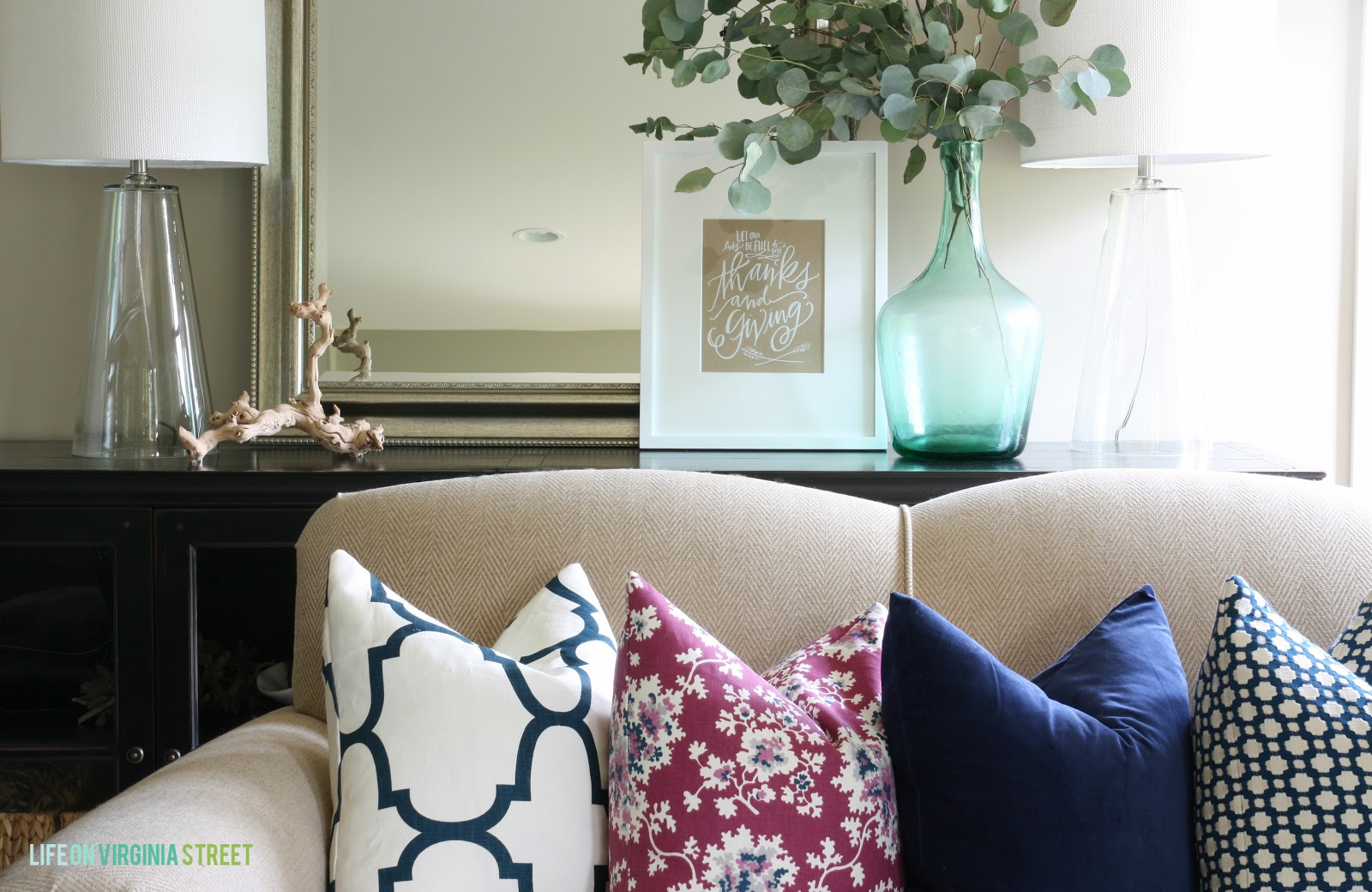 Next up is Sarah from Life On Virgina Street. You are going to love her and her beautiful home. I love how she spices up a neutral background with her accessories and a touch of color.