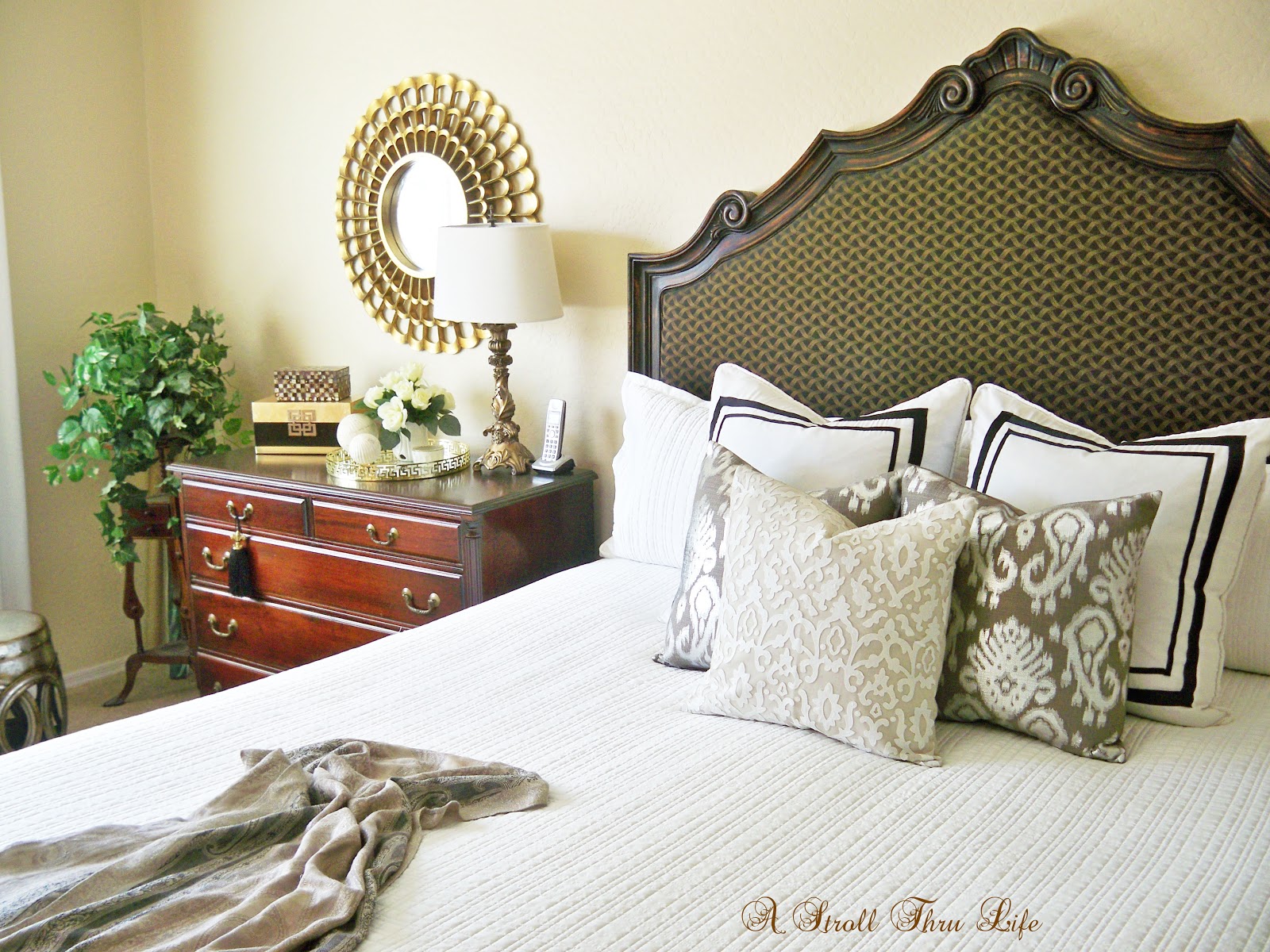 I had bright shocking pink in the Master Bedroom for summer, so I went the opposite with calm and serene for fall.