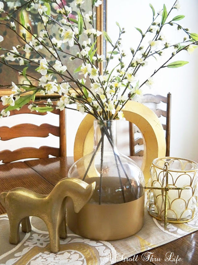 (Goodwill candlesticks – Ikea Pillow – Homegoods Tray)