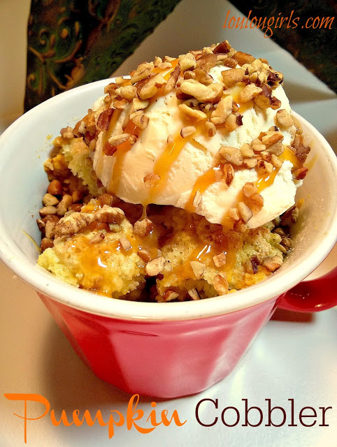 Lou Lou Girls shared their wonderful Pumpkin Cobbler. Nice and warm and topped with ice cream and fixings, yum, yum.