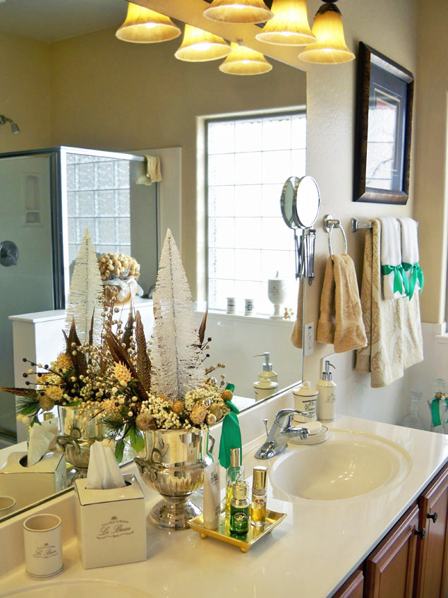 The Master Bathroom got a touch of green and sparkle like the bedroom.