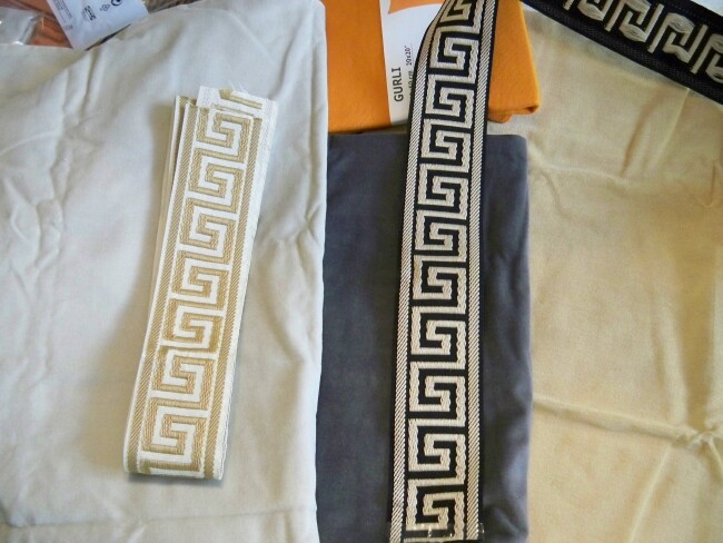As you all know, I love pillows and have quite a few. Since I sew that is a really economical accessory that changes my rooms all the time. However, some of those designer pillows are quite elaborate. Beads, tassels and my favorite Greek Key Trim.