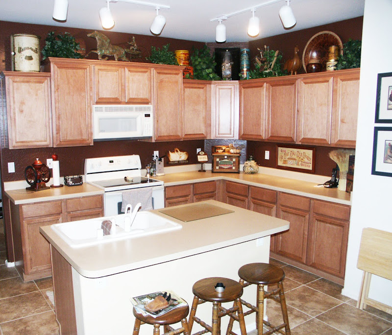 We have lived in this house about 11 years now and my kitchen was the first room to get painted. I really didn’t like the light wood cabinets and all the white that just seemed to jump out at me. Cream colored counters, white sink, white appliances and white walls. It seemed so bland.