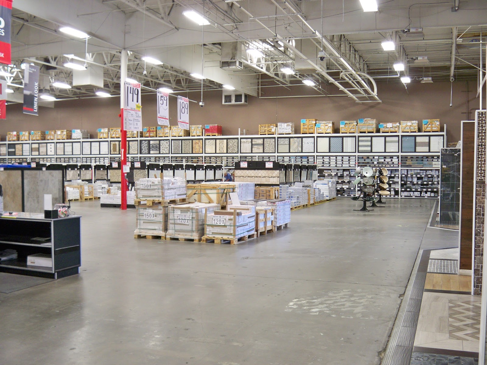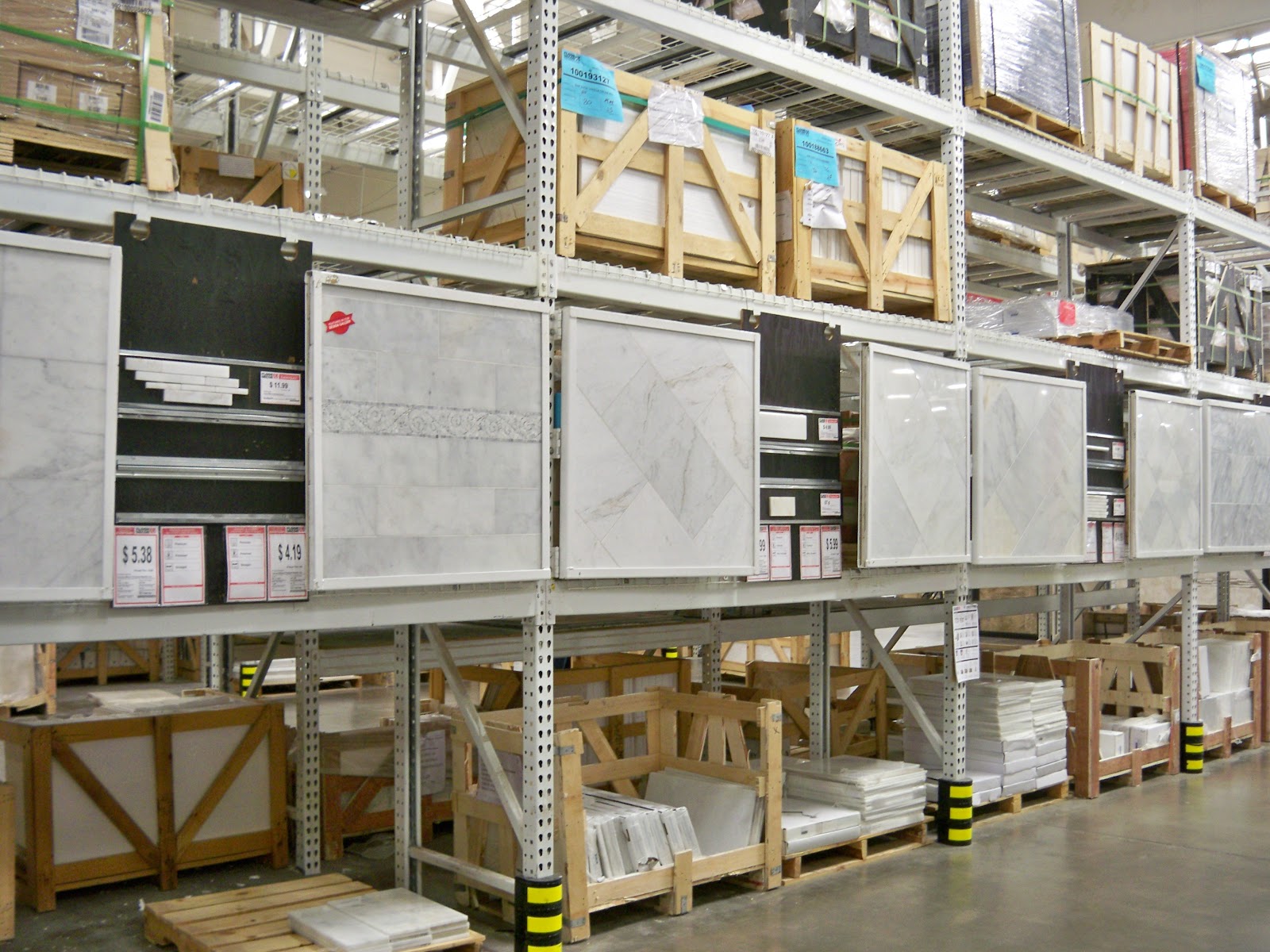 Then on my left I could see pallets of floor tile and way to the left rows of wood flooring.