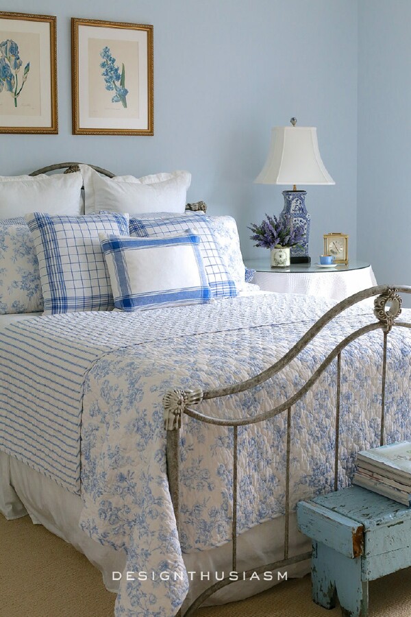 Designthusiasm created this absolutley gorgeous French Blue Guest Room that is full of inspiration. She has covered every tiny detail to make sure a guest doesn’t want a thing.
