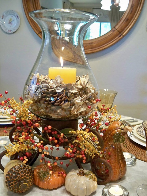 How about just mixing all of our pumpkins and gourds together. Add a cloche and instant elegant.