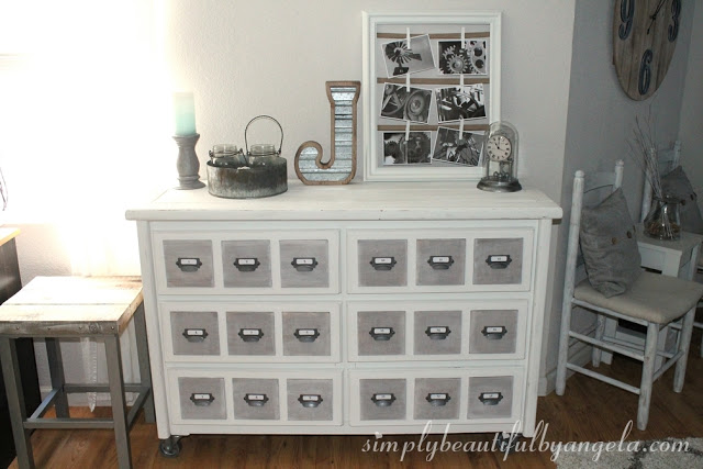 If you have an old dresser that needs a face lift, Angela @ Simply Beautiful took hers to a whole new level with this makeover. Check out here step by step tutorial to creating this really fun card catalog chest.