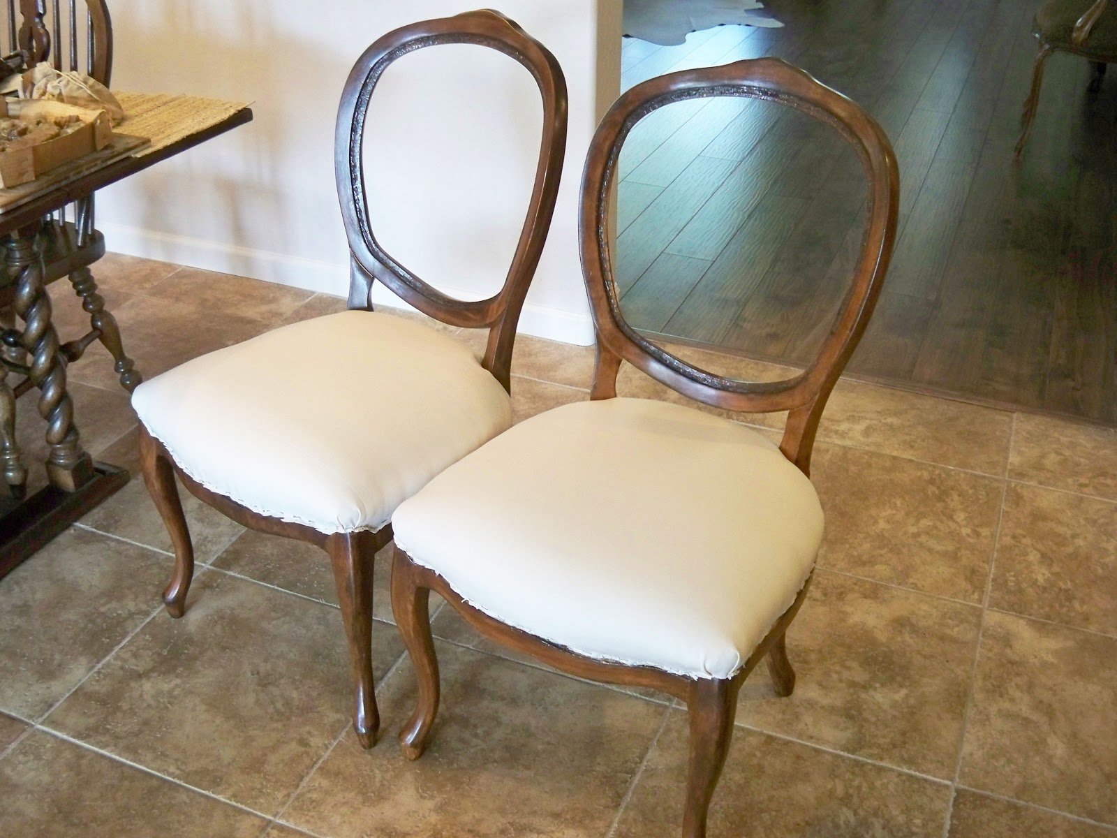 I am so pleased with how the chairs turned out. Now they are by no means professional, but for my first time doing this kind of upholstery, I am thrilled. (I still have to add the welt trim around the edges, but I just had to play.)