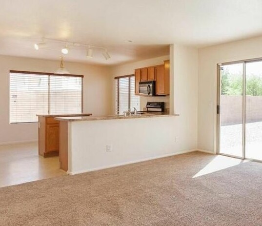 This entire wall could use some beadboard, molding or something. Corbels for sure. (Not sure why anyone would carpet right up to the breakfast bar.) New wood floors throughout the family room and kitchen are #1 on my priority list.