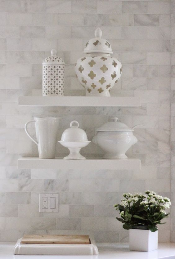 I want to use a pretty white back splash and this marble herringbone is stunning.