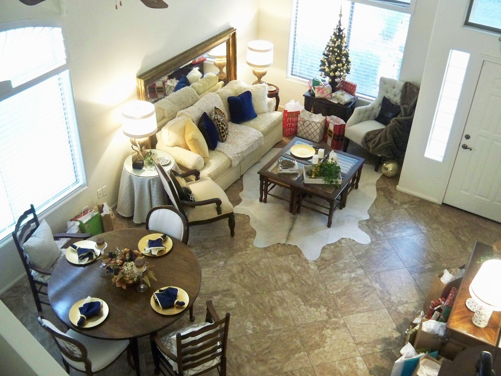 This is the view from the loft. As you can see, we just barely have some furniture arranged. . However I am thrilled to have at least one room where we can enjoy the holiday.