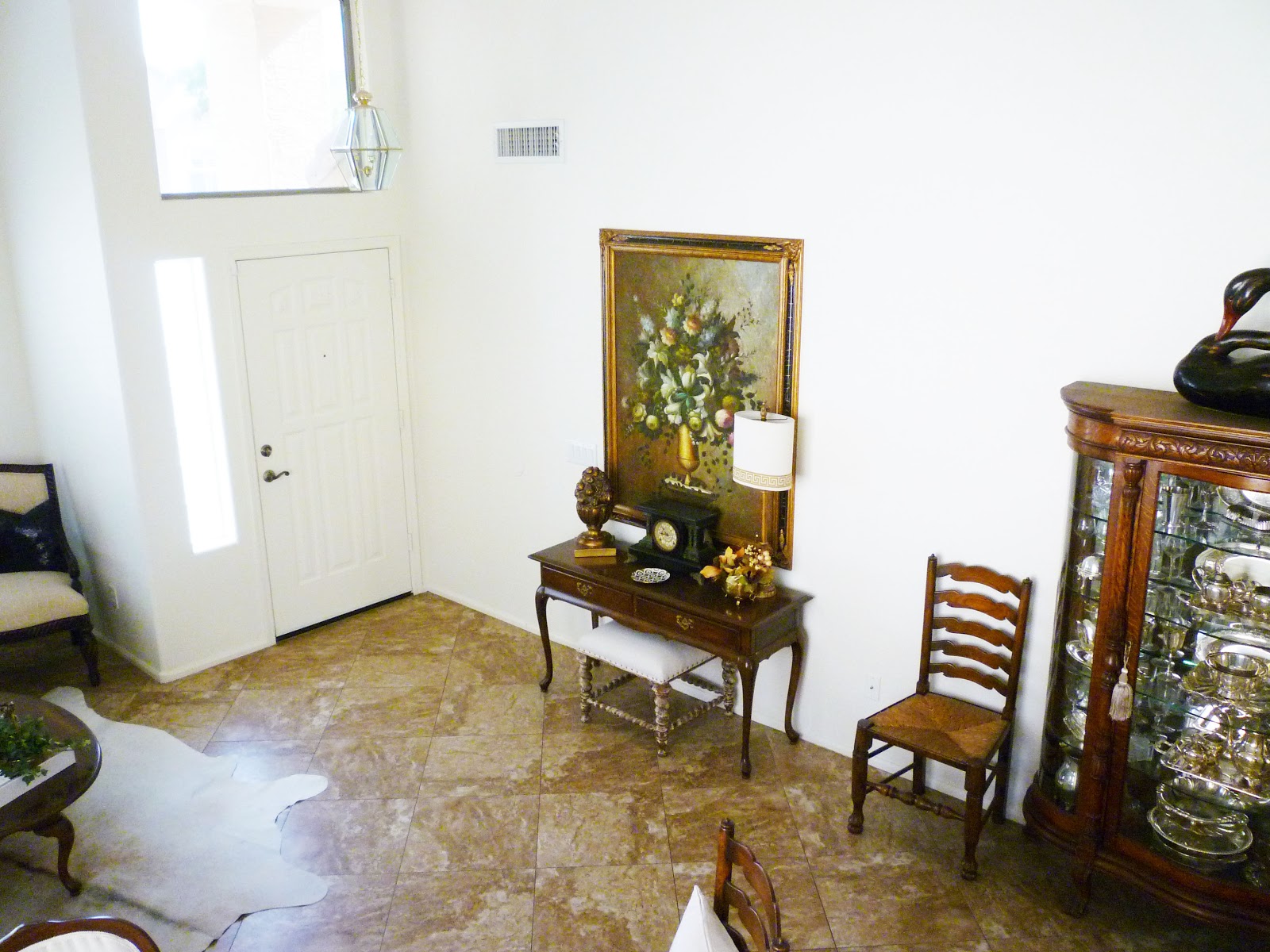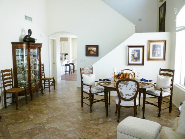 If you were standing at my front door, this is what you would see. Living room on the immediate right, dining area and then the stairs and opening into family/kitchen areas.