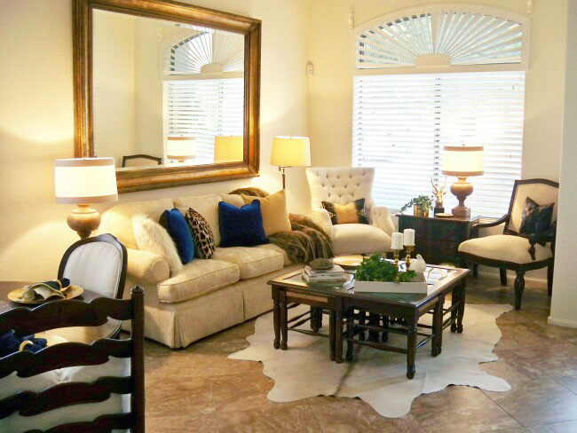 Finding just the right furniture pieces and arrangement for each room is sometimes a little trial and error. I love the two story living/dining room in my new house. It is so dramatic when you walk in. Even though the room is much larger than my last home, the same furniture arrangement didn’t work. It felt way too crowded.