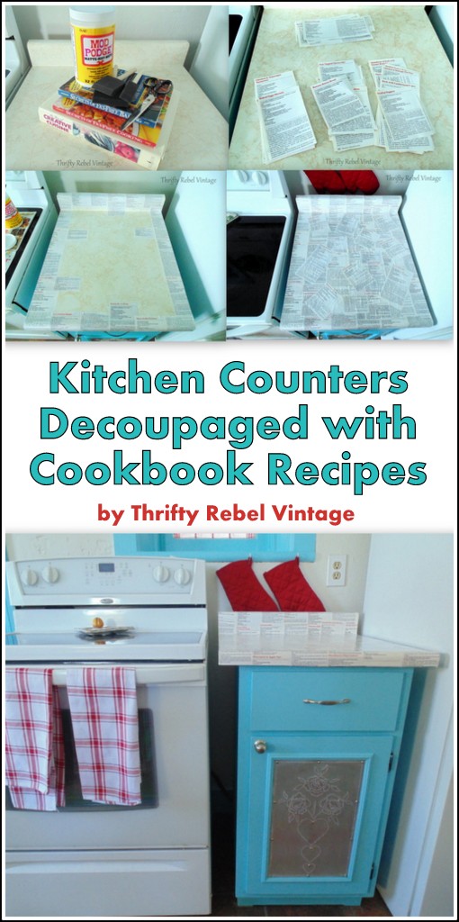 Do you have kitchen counters that you don’t like? Thrifty Rebel Vintage did, but look at her answer to the problem. How fun is this.