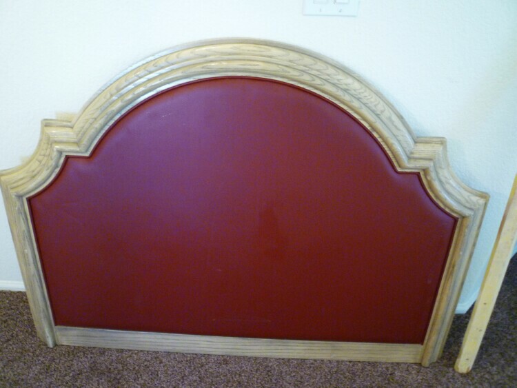 I always try to keep an open mind when I see something as to how I could remake it to give me the upscale look I love. I was wandering through Hotel Liquidators looking for a chest of some kind to makeover that I could use on the patio. I didn’t find anything, but I always have to look around. Headboards are really expensive and that is not top priority at the moment, however when I saw this one, of course I had to have it. Is this UGLY or what? Now I haven’t lost my mind, I think I can make this into a jewel.