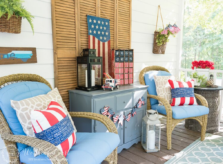 Worthington Court also had some gorgeous 4th decor ideas that she shared. I love her screened in porch and how easily she transformed what she was using into the perfect 4th celebration with just a few changes.