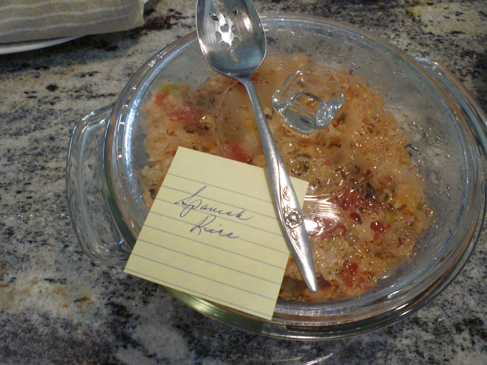 And a Bowl of Spanish Rice that will also be heated up at the last minute.