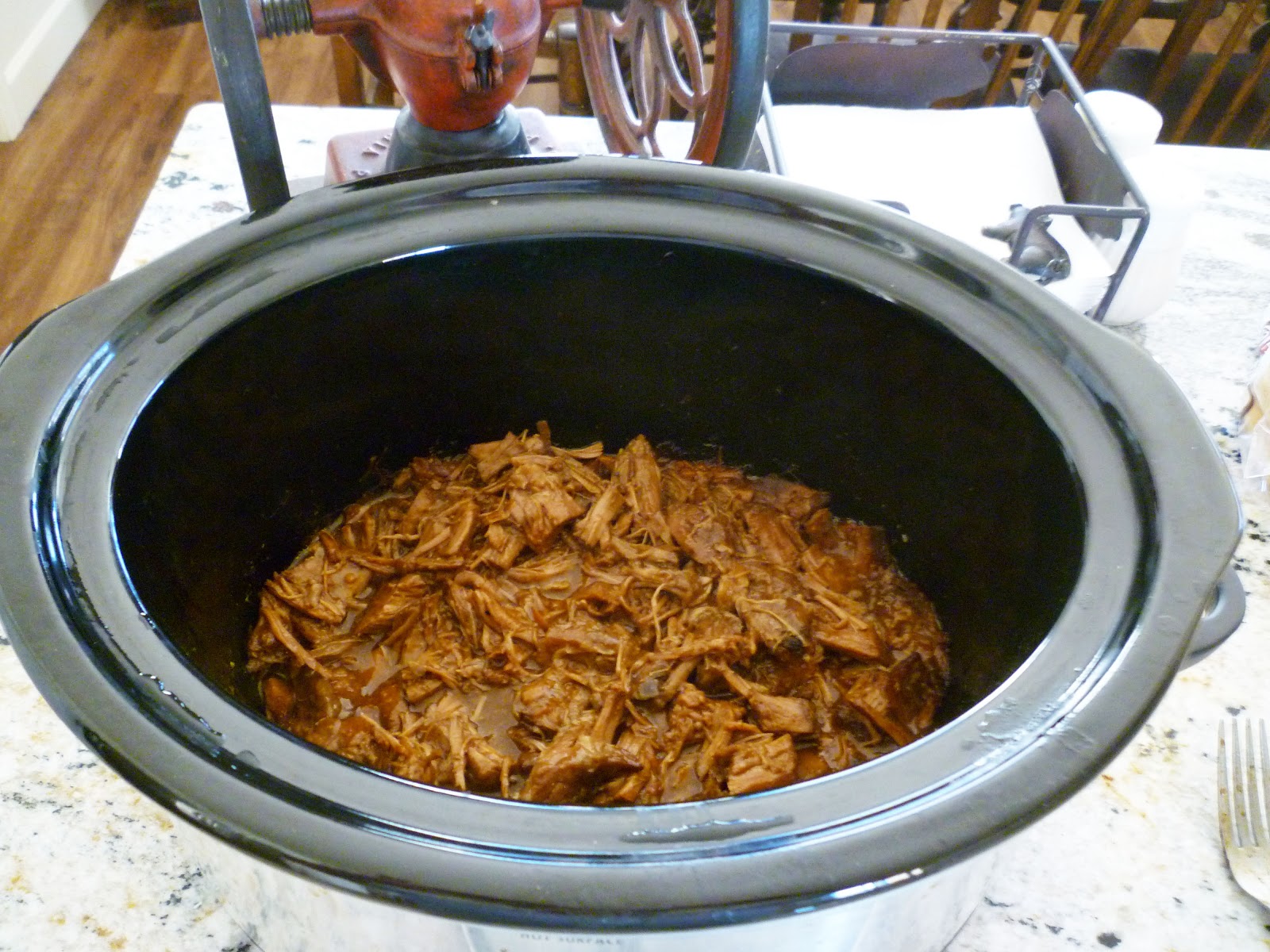 Remove and shred with two forks, then place back in crock pot to keep warm.
