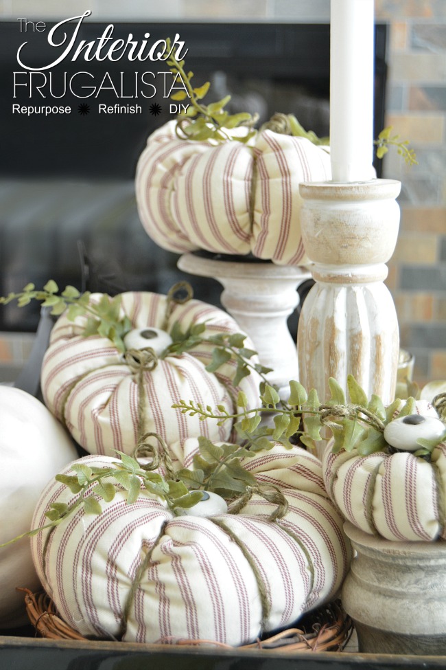 I know some of you are still wanting to make a few of your own pumpkins to fit your style. The Interior Frugalista shares the most detailed tutorial I have ever seen. You can use any fabric and how fun to use door knobs for stems.