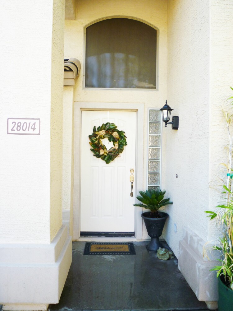 For now I think this is going to have to do for the front entrance. (I really want to paint the front door a color to coordinate with the house trim, so I need to look at a few paint chips. I think that would also add some character to the front entrance.)