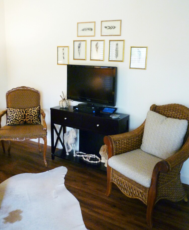 I had 7 different images, so I bought 7 frames from the Dollar Store and we created this really neat collage around the tv.