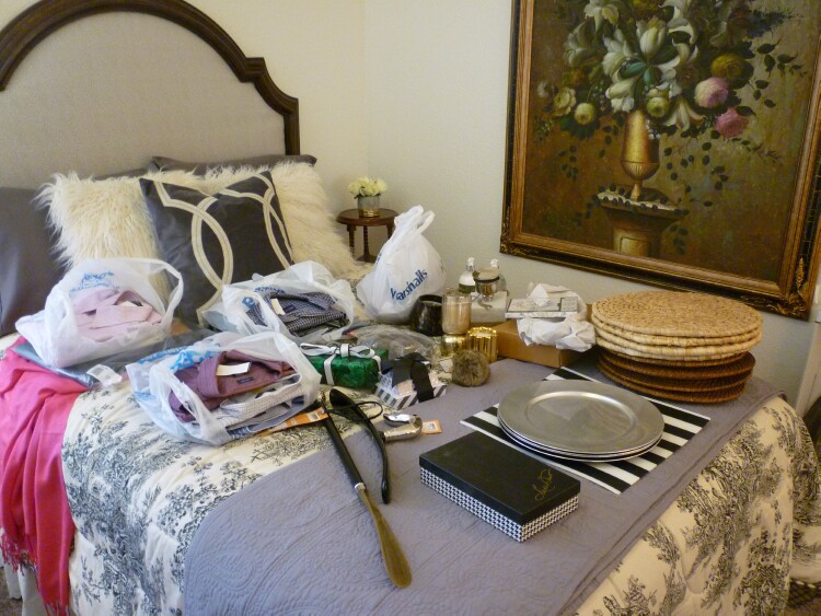 Gift Giving: I always start a little early and try to find a few presents as the year unfolds that I think people will like. That is all well and good, but if I buy things too early then I forget where I put them, or I wind up with a mess like I have here in the corner of my guest bedroom.