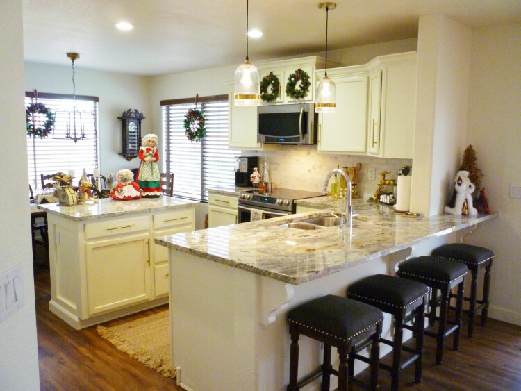 We moved in the week before Christmas last year so there was no way I could decorate this area. I was lucky to get the boxes out of the way in time for my family to be here Christmas night. Since we had lived far away from them for 12 years, I couldn’t wait to have them all here and celebrate Christmas. (In case you are new, here is what the kitchen looked like when we bought the house,)